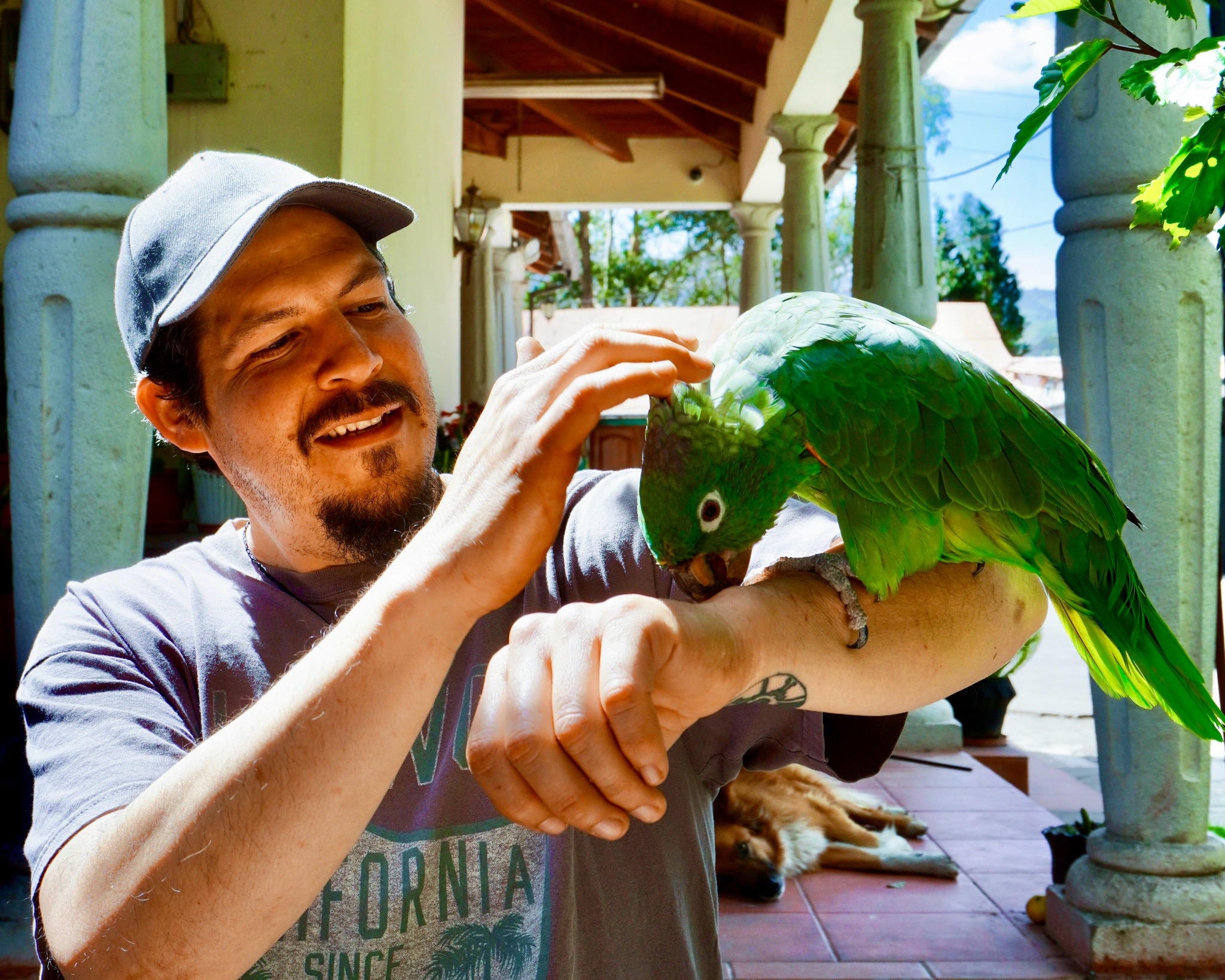 “The mountainside was still falling, but it was like fight or flight”, he said, stroking his pet parrot, Marco, for comfort. “I stayed there because I wanted to help my town”.